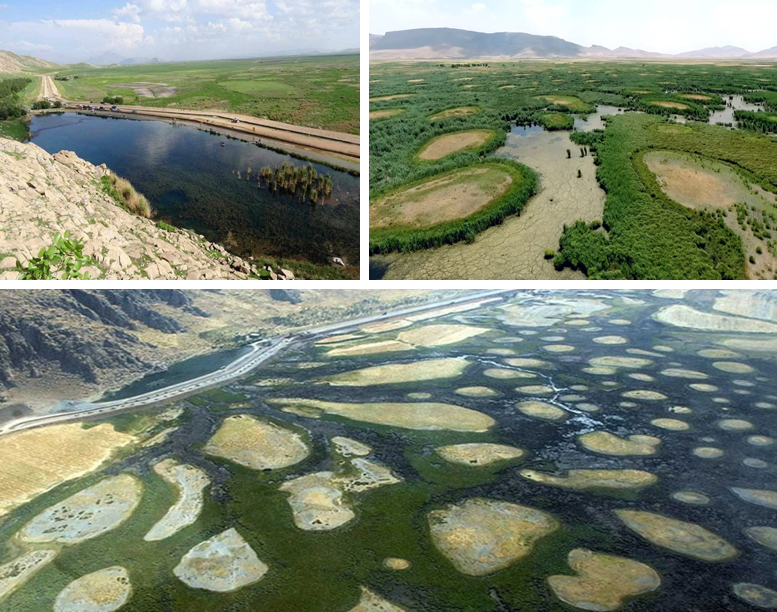 تالاب هشیلان که در حدود ۳۶ کیلومتری شمال غربی شهر کرمانشاه قرار دارد، بعنوان منطقه شکار ممنوع بوده و آب این تالاب به‌صورت سراب و چشمه‌های جوشان است. در این تالاب حدود ۱۱۰ جزیره کوچک و بزرگ با مساحت تقریبی از ۱۰۰ متر مربع تا حدود یک هکتار وجود دارند که در فصل زمستان و روزهای پرباران، در اثر افزایش دبی آب تالاب بعضی از آن‌ها در زیر آب پنهان می‌شوند. نام تالاب بر اساس گویش کردی، مرکب از دو بخش "هشی" به معنی مار و "لان" به معنای خانه است و از آنجاییکه در این تالاب تعداد زیادی مار به‌ویژه مار آبی و مار چلیپر وجود دارد، بنابراین نام هشیلان به معنای لانه ماران می‌باشد.
