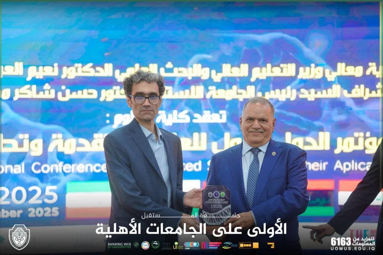 در نهایت اولین کنفرانس علوم پیشرفته و کاربردهای آن (icasa2025) به میزبانی دانشگاه المستقبل عراق با حضور اساتید مدعو دانشگاه رازی به عنوان سخنران کلیدی برگزار گردید.