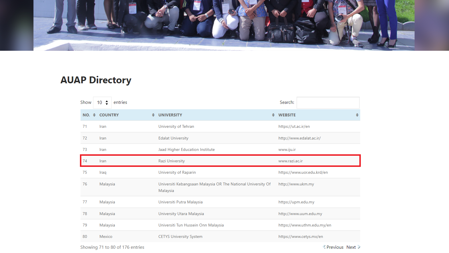 دکتر طیبه ناصری، مدیر دفتر همکاری‌های علمی بین‌المللی دانشگاه رازی از عضویت این دانشگاه در اتحادیه دانشگاه‌های آسیا و اقیانوسیه (AUAP) در سال جاری خبر داد.