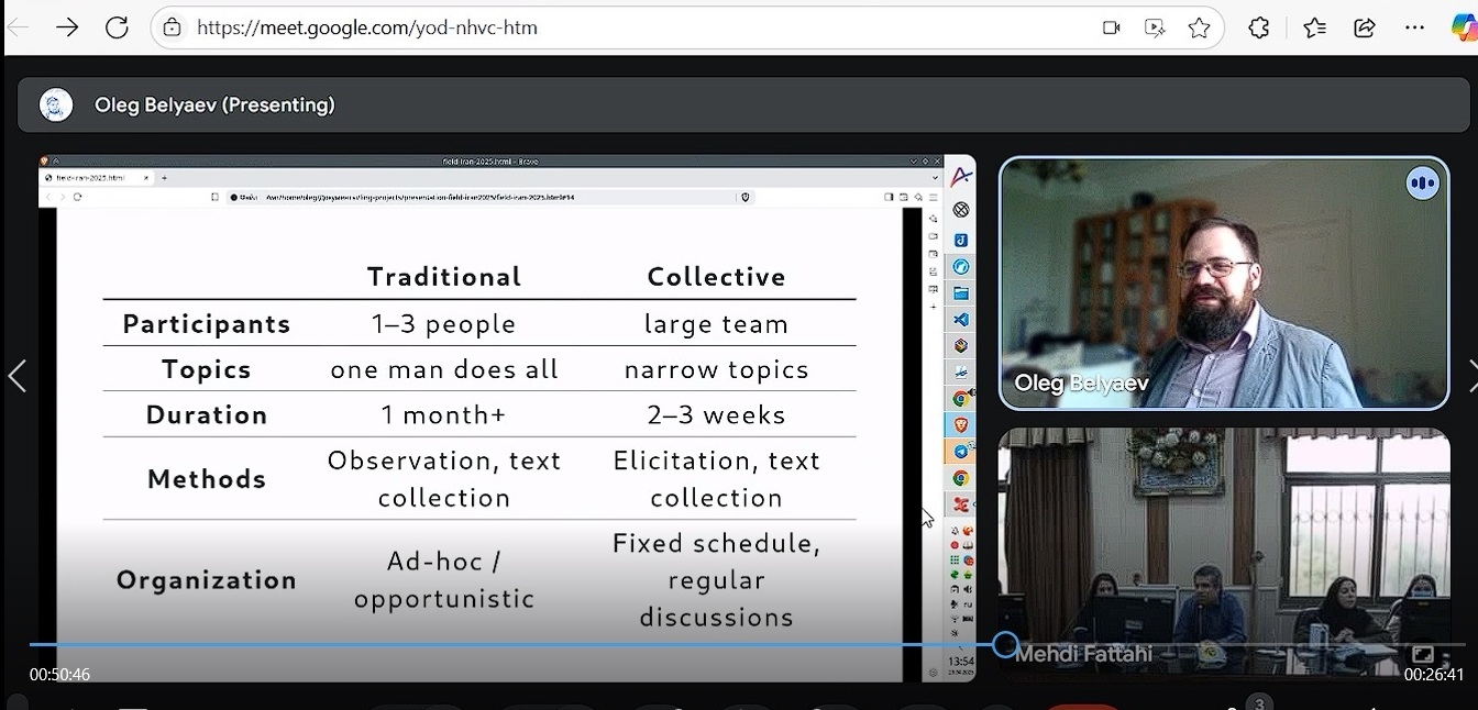 تدریس مشترک درس گویش شناسی با استاد پژوهشگاه زبان شناسی مسکو