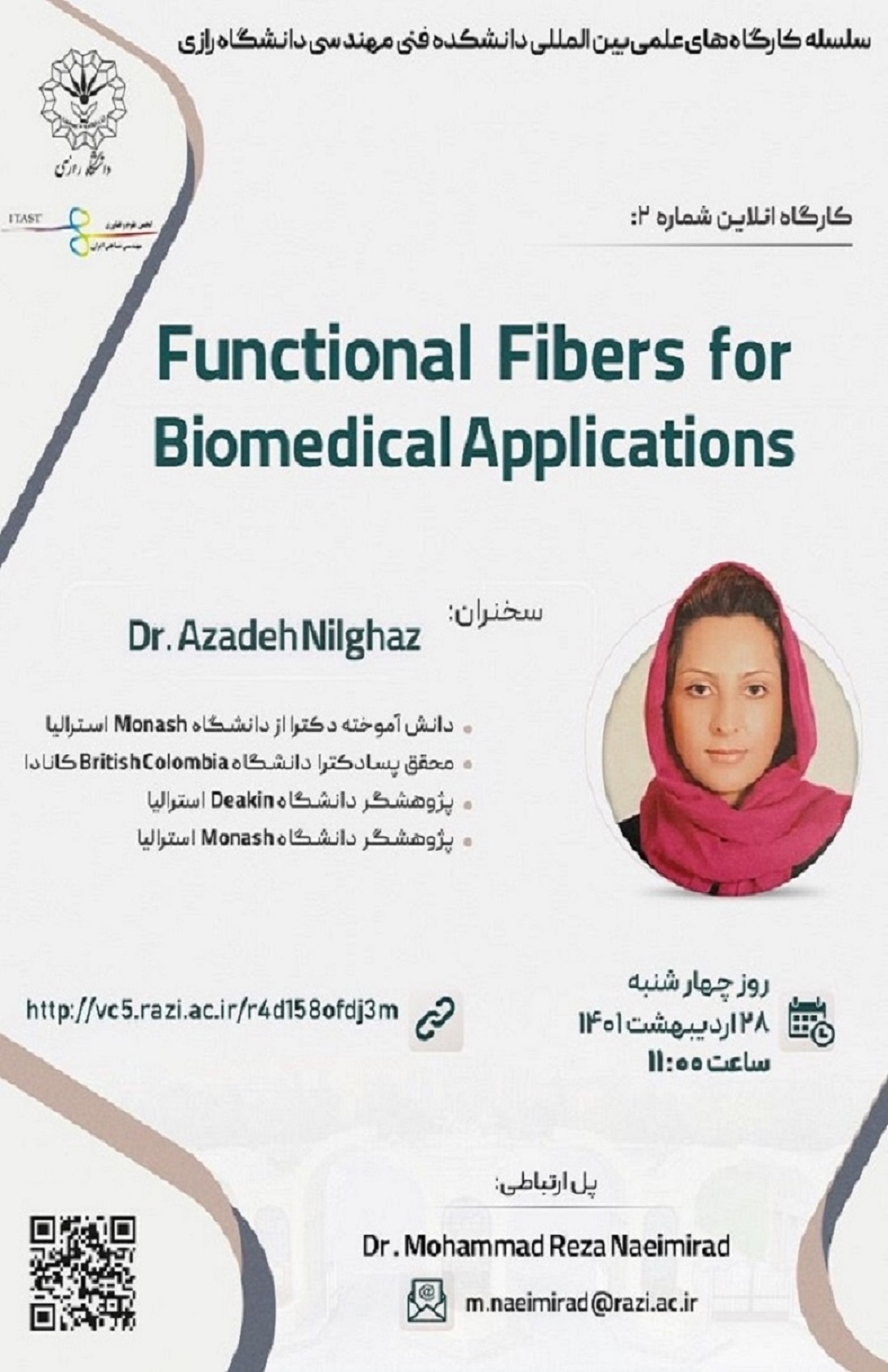 2434 وبینار علمی پژوهشگاه پلیمر توسط آقای دکتر مهدی پورعطایی عضو هیأت علمی پژوهشگاه پلیمر پژوهشگاه پلیمر برگزار میکند: Preparation, characterization, and performance of novel types of sulfonated...